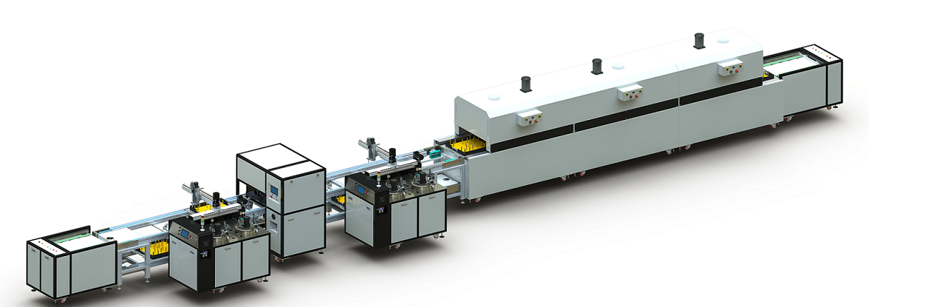 在線式灌膠真空烘干生產(chǎn)線 集灌膠、真空脫泡、加溫固化、工裝回流為一體的自動(dòng)生產(chǎn)線
